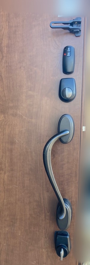 防犯レベルを上げた別メーカーのディンプル錠を上下に取付。
